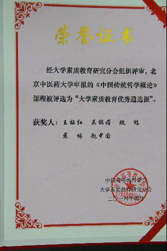 《中国传统哲学课程概论》被评为大学素质教育优秀通选课