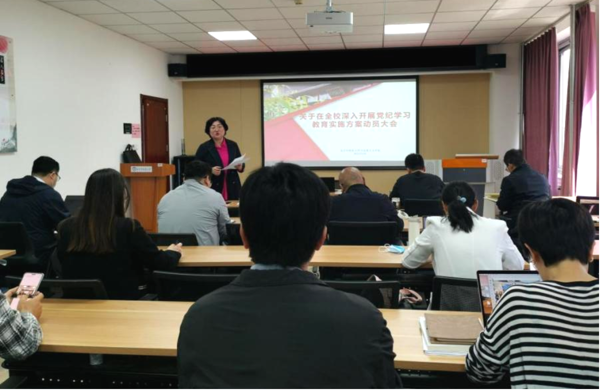 2024年4月17日,公司党委在104报告厅召开党纪学习教育工作部署会,学院全体教师参加会议,会议由公司党委书记李玮主持。