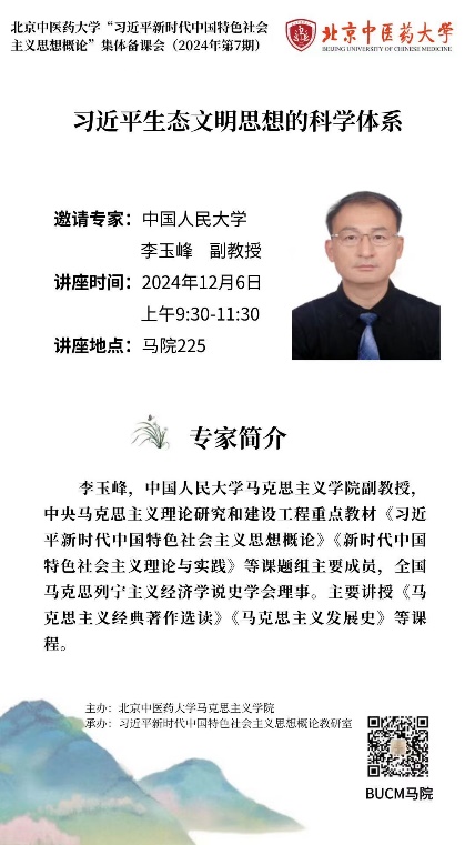 2024年12月6日上午由betway西汉姆联官网主办、习近平新时代中国特色社会主义思想概论教研室承办的“习近平新时代中国特色社会主义思想概论”集体备课会(2024年第7期)顺利举行。本次备课会特邀中国人民大学betway西汉姆联官网李玉峰副教授作了主题为《习近平生态文明思想的科学体系》报告,会议由公司党委副书记王良滨教授主持,betway西汉姆联官网经理邱仁富教授做总结发言。习近平新时代中国特色社会主义思想教研室教师、形势与政策教研室老师及部分研究生共同参加。