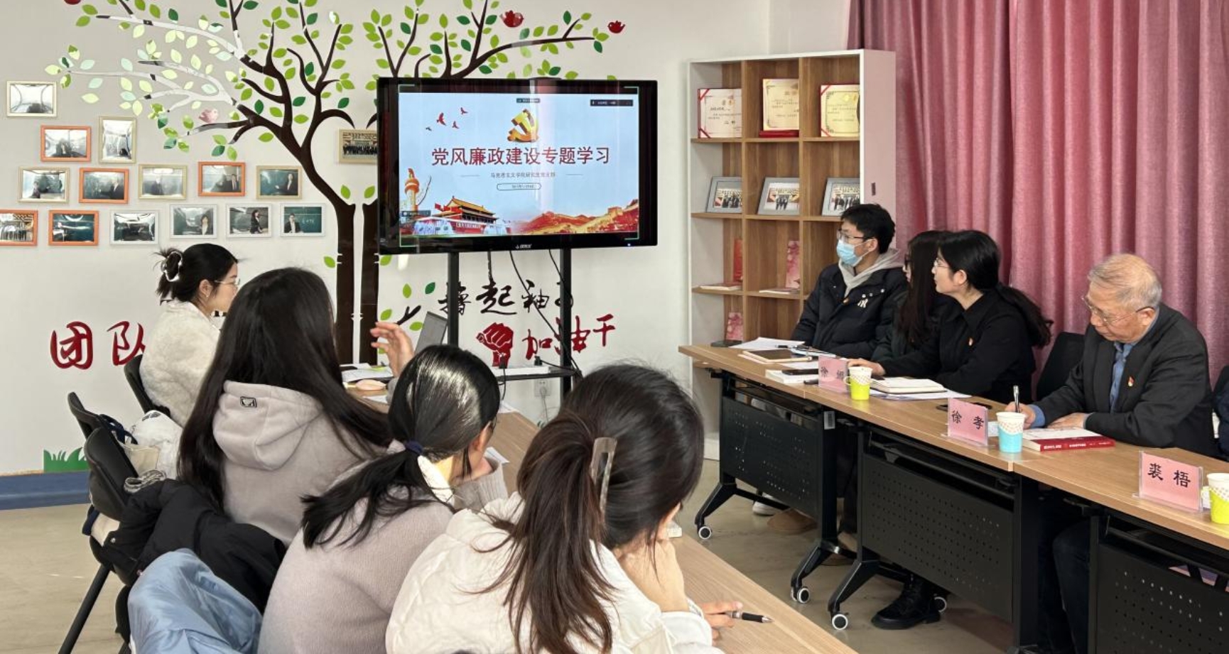 第二项内容为党风廉政建设专题学习。研究生党支部书记徐娜领学以“讲党性、守党规、严党纪”为主题的党风廉政建设内容,并且强调党员同志要时刻做到“五有”:有追求、有正气、有责任心、有标准、有底线。通过视频、典型案例剖析等形式,引导党员同志们强化红线意识,以案明纪,警钟长鸣。