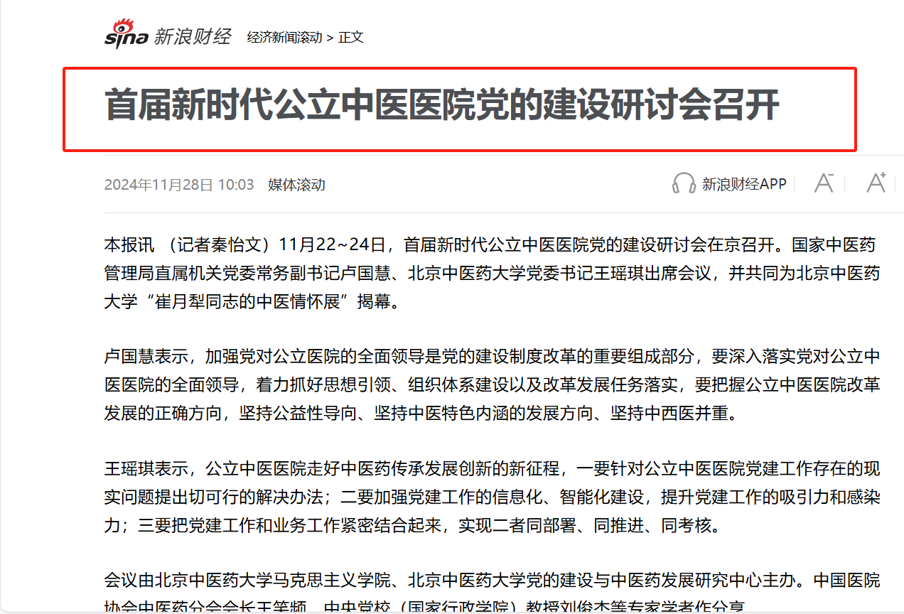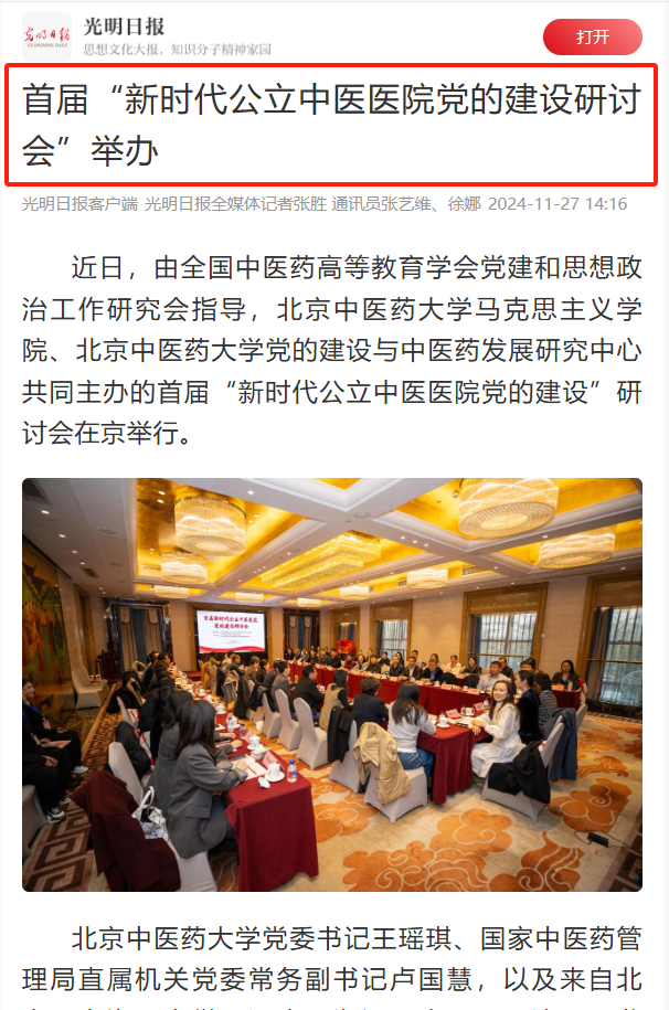 “首届新时代公立中医医公司党建工作”研讨会是推进特色团队建设、打造有影响力研究平台的重要举措,产生了广泛影响。会议召开后,光明日报客户端、中国社会科学网、新浪财经等权威媒体进行了全面报道,中国中医药报进行了整版的专题报道。